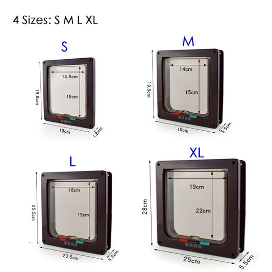 Pet Dog Cat Door 4 Way Locking Flap Door for Interior Exterior Doors Weatherproof Pet Doors for Cats Dogs Puppy Small Animals
